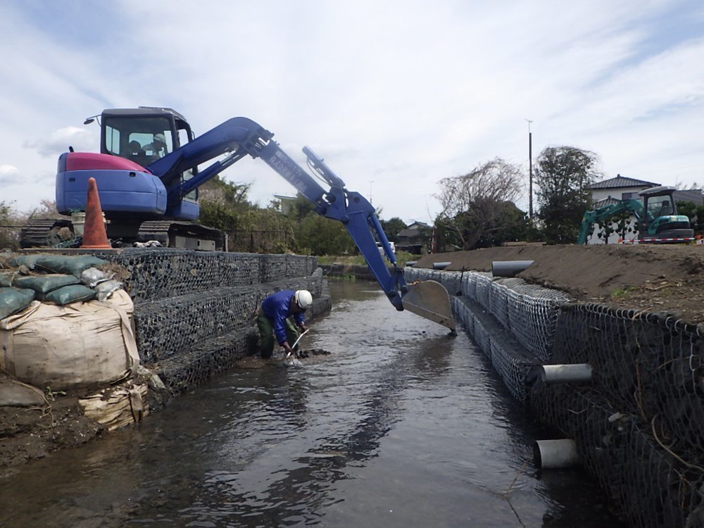 大雨による河川の氾濫を防ぐため、堤防強化や河川掘削などの河川の維持修繕をいたします。